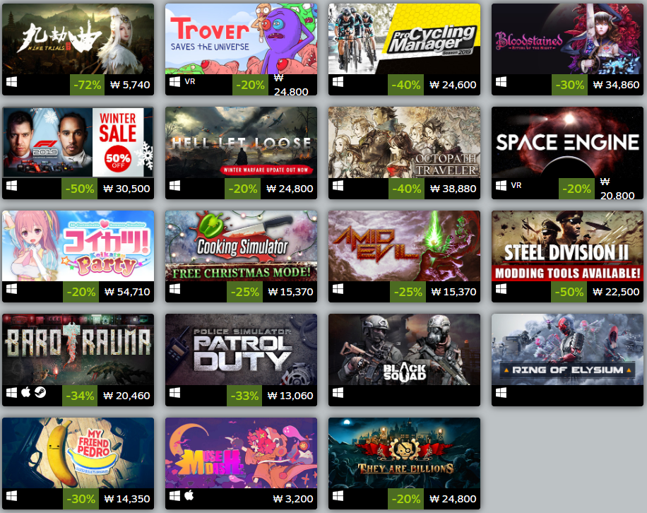 | 스팀 겨울 할인 때 1만 2천원보다 싸게 살 수 있는 최고의 게임들 (0) | 2019.12.28 |