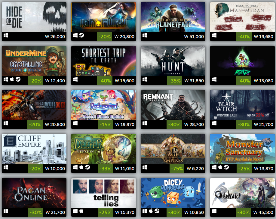 스팀은 매월 20개의 게임을 뽑았는데 4월, 5월 등 19개인 게임이 있습니다. 게임 목록도 달라요.