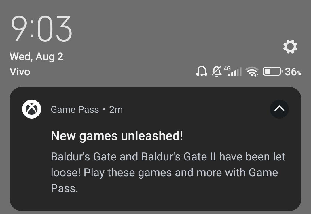 발더스 게이트 1과 2가 게임 패스에 들어왔다는 알림입니다. 당연히 실제로는 없었죠.