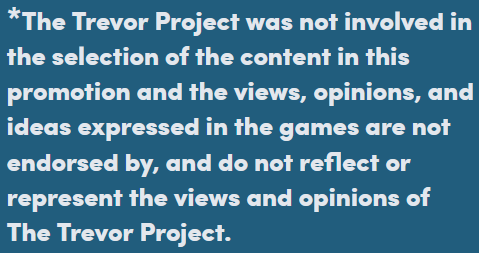 6월 험블 초이스 판매 중 5%는 성정체성에 의문을 품은 아이들의 자살을 예방하는 더 트레버 프로젝트(The Trevor Project)에 기부합니다.