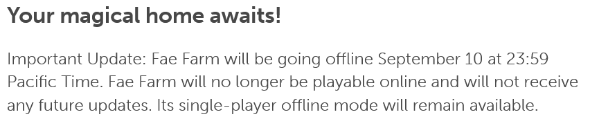 2월에는 마지막 남은 게임인 페이 팜의 향후를 몇 주 뒤 밝힌다고 했는데 6개월이 지나 몰래 온라인과 업데이트를 포기하고 있습니다.