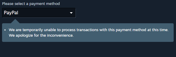 밸브는 많은 나라의 스팀에서 페이팔을 사용할 수 없는 문제에 관해 공지했습니다.