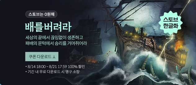 스마일게이트 스토브는 광복 80주년 기념으로 8월 21일까지 '배를 버려라(Abandon Ship)'를 무료로 제공합니다.