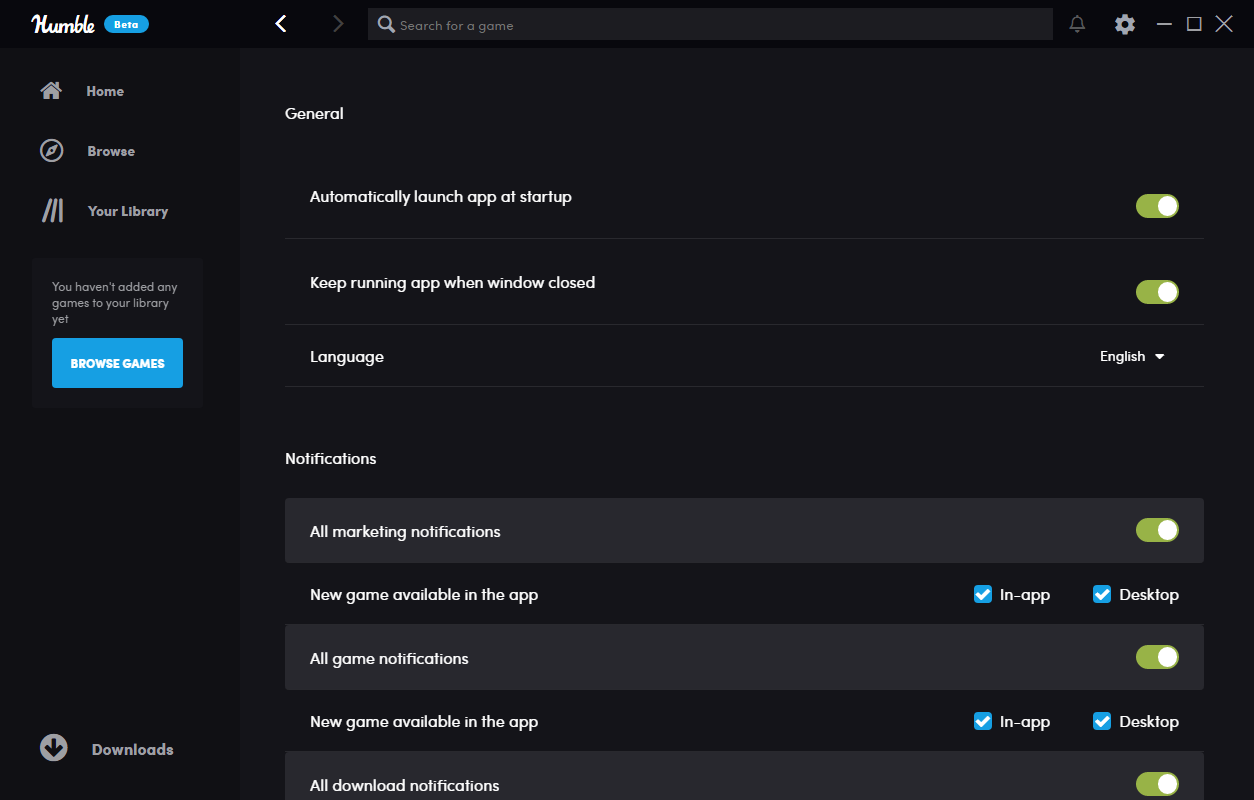 사용하려면 험블 앱이라는 런처를 설치해야합니다.