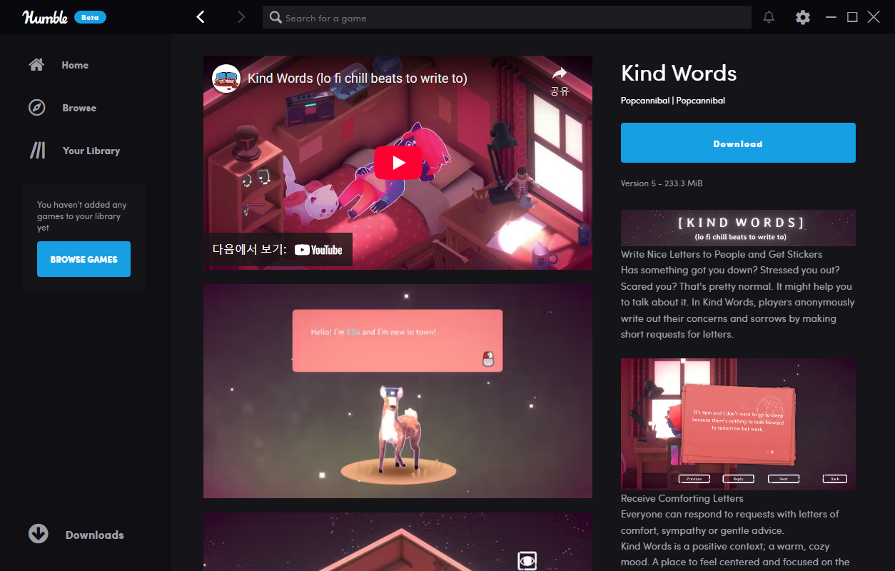 아이콘이 저해상도인 게임이 꽤 있는데 누르면 앱에서 받을 수 없고 험블 홈페이지에서 받아야한다며 게임 설명도 없습니다.
