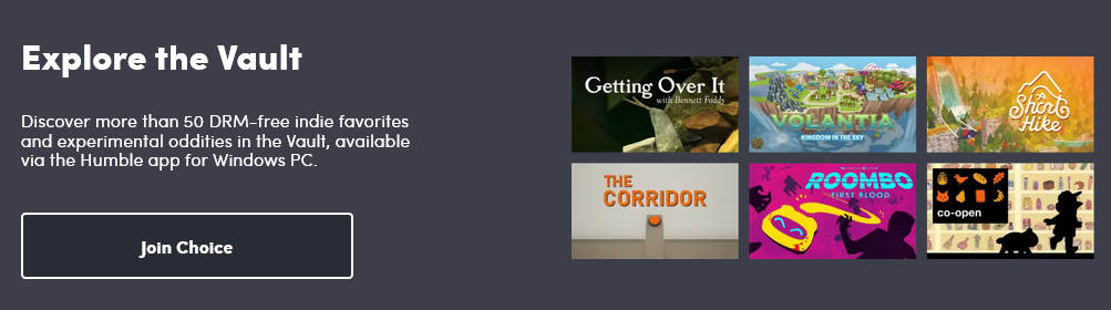 볼트에 있는 게임은 험블 초이스에 가입했을 때만 다운로드할 수 있는데요.