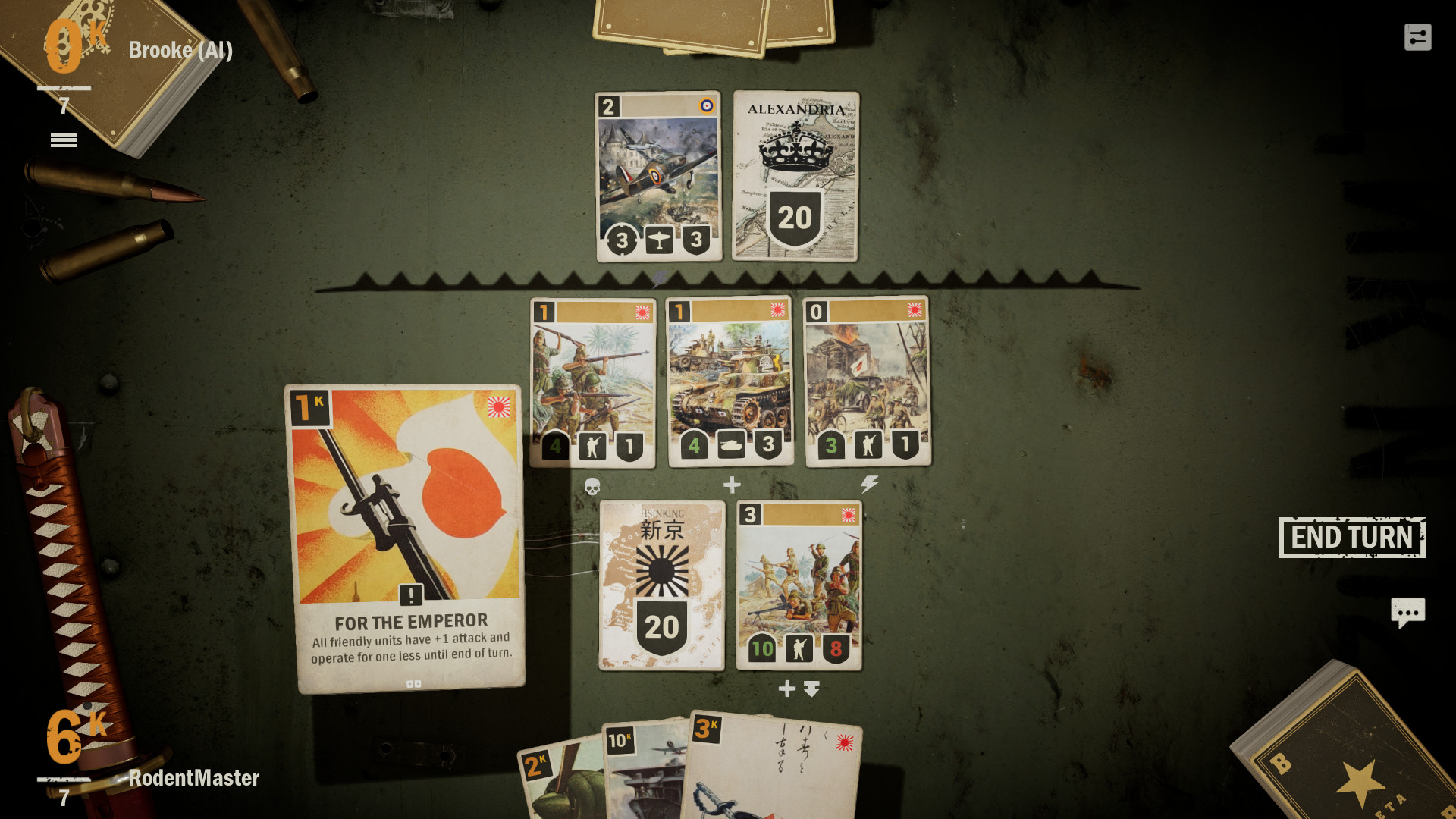2차세계대전 기반의 카드 배틀 게임입니다. 당시의 5대국 중 선택하여 각 병과를 잘 조합해 플레이합니다.