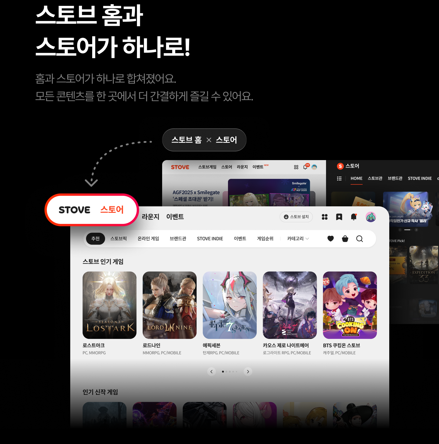스마일게이트는 11월 24일 스토브 홈을 개편한다고 공지했습니다.