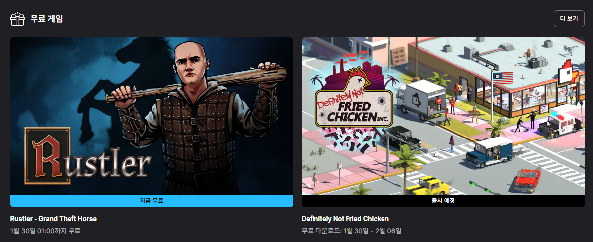 에픽 게임즈 스토어는 1월 30일부터 2월 6일 오전 1시까지 데피닛리 낫 프라이드 치킨(Definitely Not Fried Chicken)을 무료로 제공합니다.