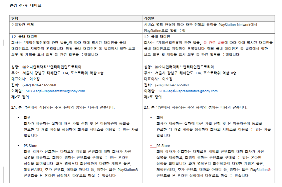 약간 안 좋아진 듯한 부분은 구독 서비스인 플레이스테이션 플러스(PS+)의 갱신 전에 공지를 해야한다는 부분을 삭제했습니다.