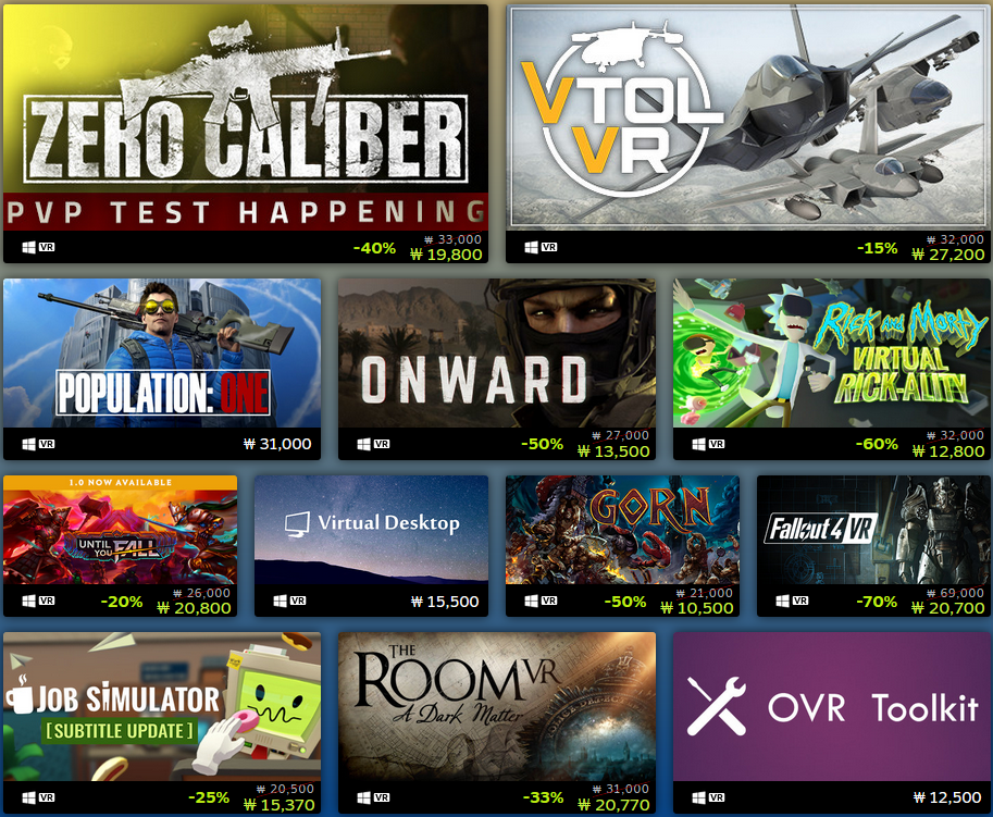 2020년 스팀 최고 인기 게임 100위 중 VR 게임은 이 게임밖에 없어서 쉽게 알 수 있습니다. VR 게임 중 가장 잘 팔렸지만 전체 게임 중에서는 50~100위입니다.