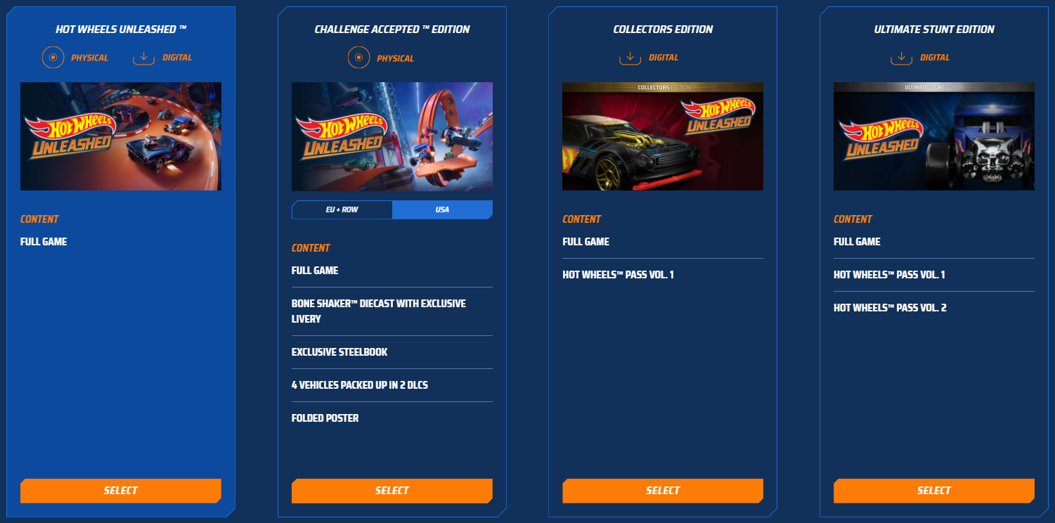 얼티밋 스턴트 에디션은 컬렉터스 에디션에 스트리트 비스트 팩, 핫 휠 패스 Vol.2가 더 들어 있습니다. 디지털로만 판매하며 가격은 89.99달러입니다.