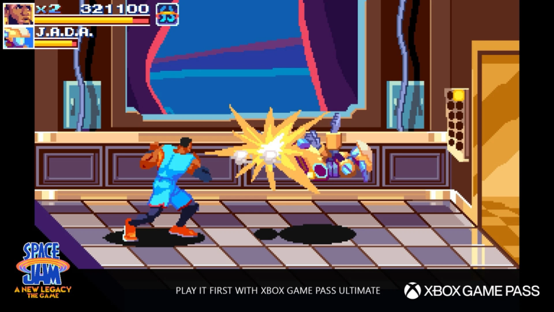 게임은 스페이스 잼: 새로운 시대 - 더 게임(Space Jam: A New Legacy – The Game)이라는 이름으로 90년대 아케이드 스타일의 횡스크롤 액션 게임으로 벅스 버니, 롤라 버니, 르브론 제임스로 플레이합니다.