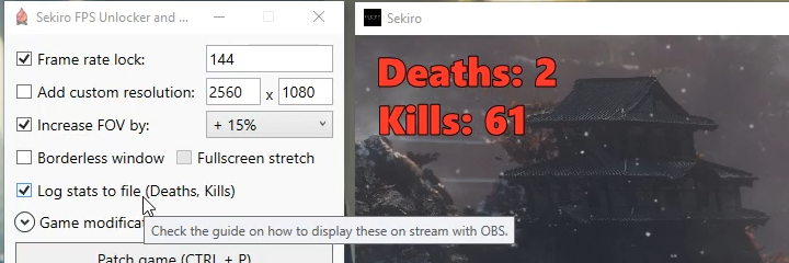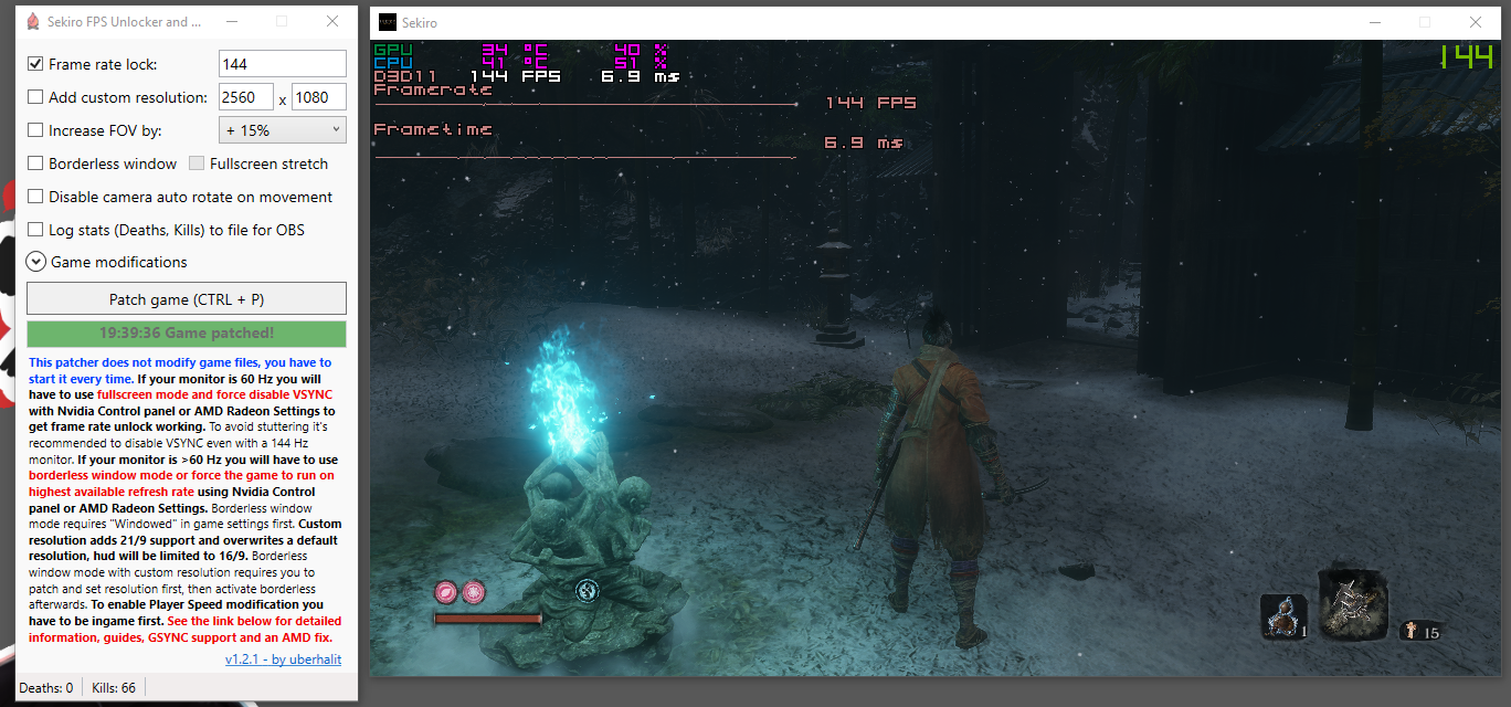 이 모드는 세키로의 프레임 제한을 해제하고, 21:9 비율의 해상도를 지원합니다.