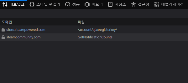 2. F12를 눌러 개발자 도구를 열고 네트워크(Network)를 누른 다음 코드를 넣고 스팀 이용 약관에 동의하고 계속을 누릅니다.
