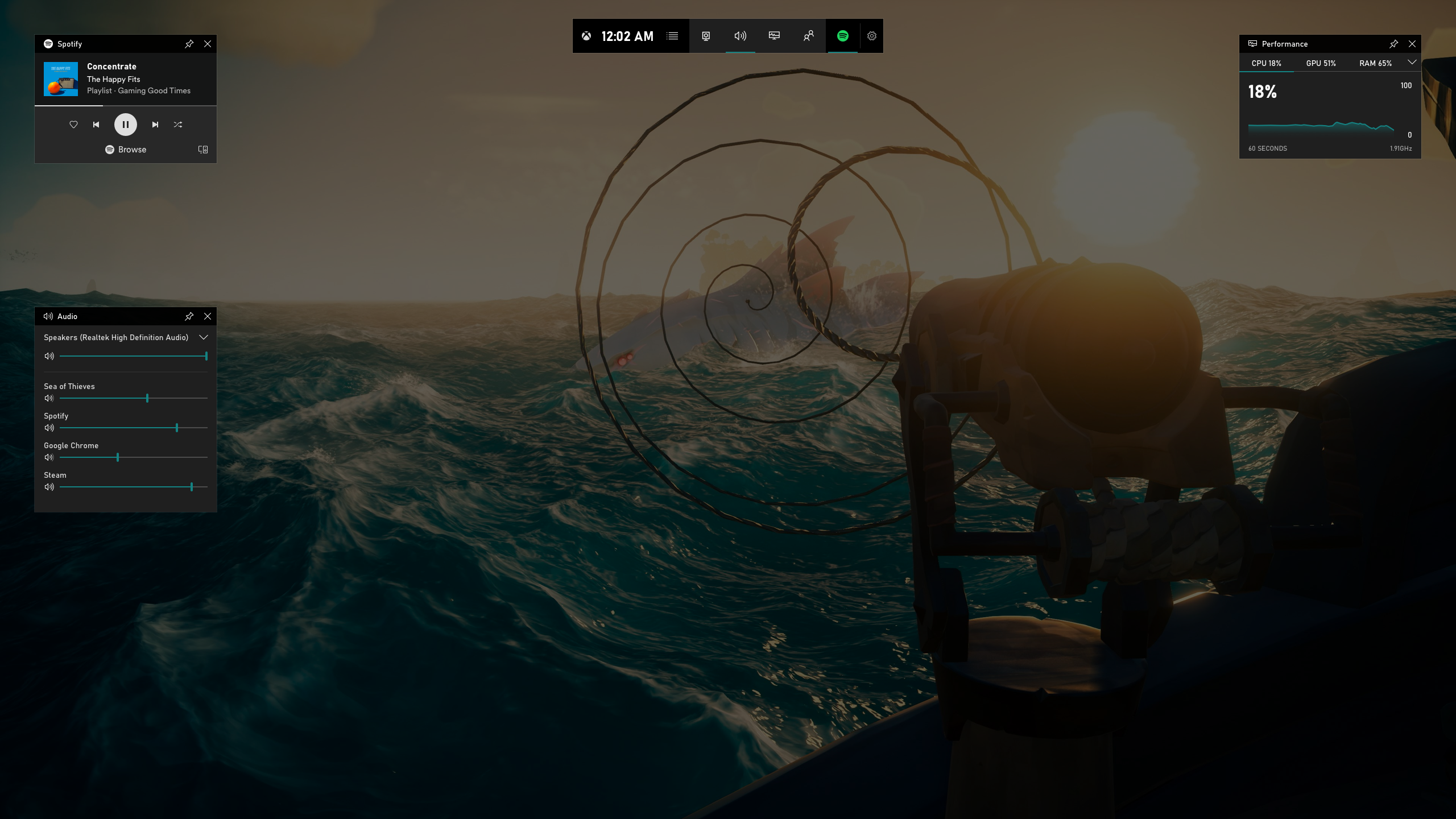 엑스박스 게임 바의 스포티파이 위젯에서 음악과 팟캐스트를 들을 수 있게 됩니다.