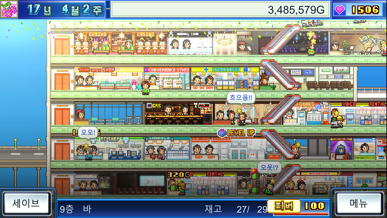 가게를 배치하고 관리해 손님을 모아 거대한 백화점을 만듭니다.