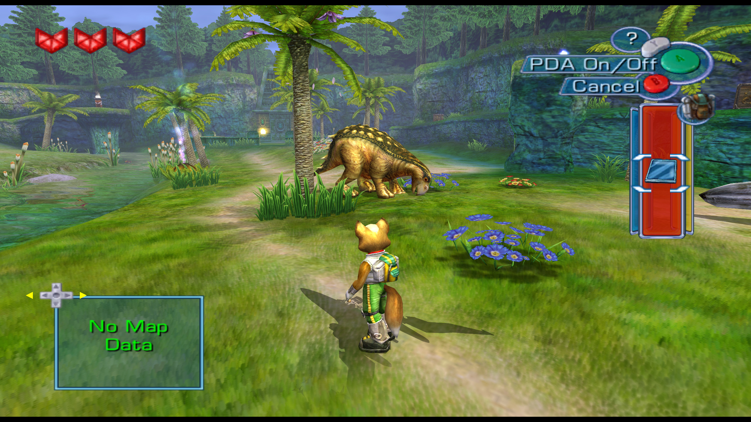 게임은 위를 극한까지 밀어붙입니다. 위에서도 10프레임 중반으로 자주 떨어지는데 돌핀에서는 거의 플레이가 불가능합니다. 도시의 그 어떤 것도 렌더링이 안 되었죠.