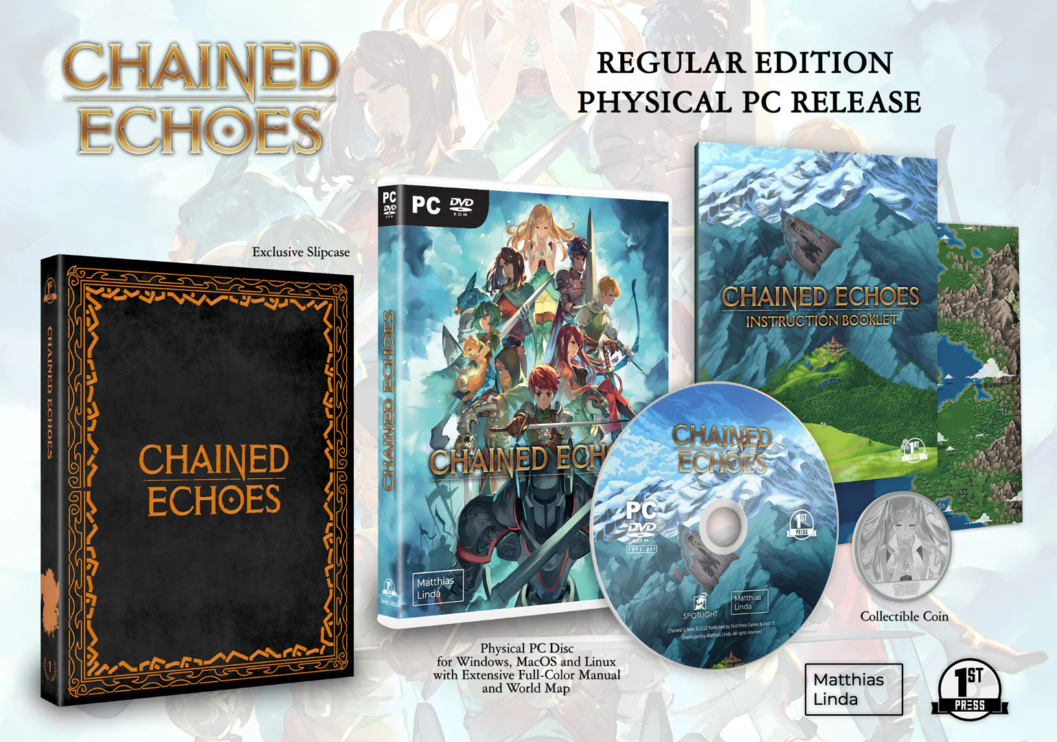 레귤러 에디션은 가죽 느낌의 케이스, 게임, 일련번호를 새긴 실버 코인, 영어 설명서, 지도입니다.