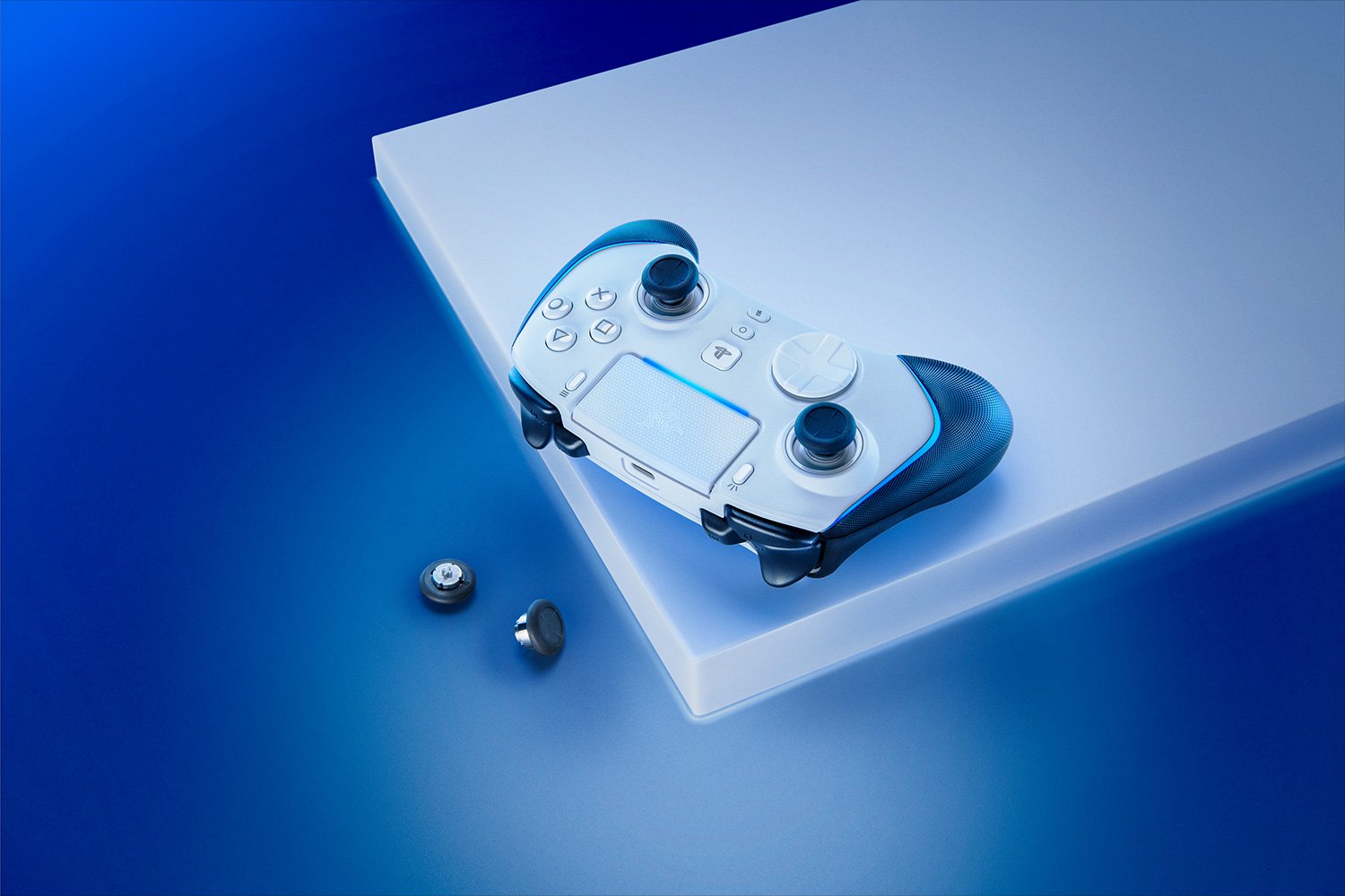 V2 프로는 무선이며 PS5와 같은 흰색이나 그립 부분은 검은색입니다. V2 크로마의 PS5판으로 보아도 무방하나 그 밖에도 몇 가지 차이가 있습니다.
