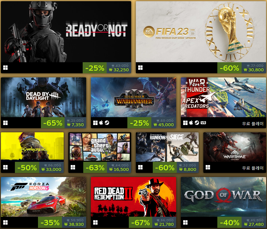 골드는 피파 22가 피파 23으로 바뀌었습니다. 22는 실버로 내려갔죠. 워 썬더와 워프레임도 꾸준히 유지 중입니다.