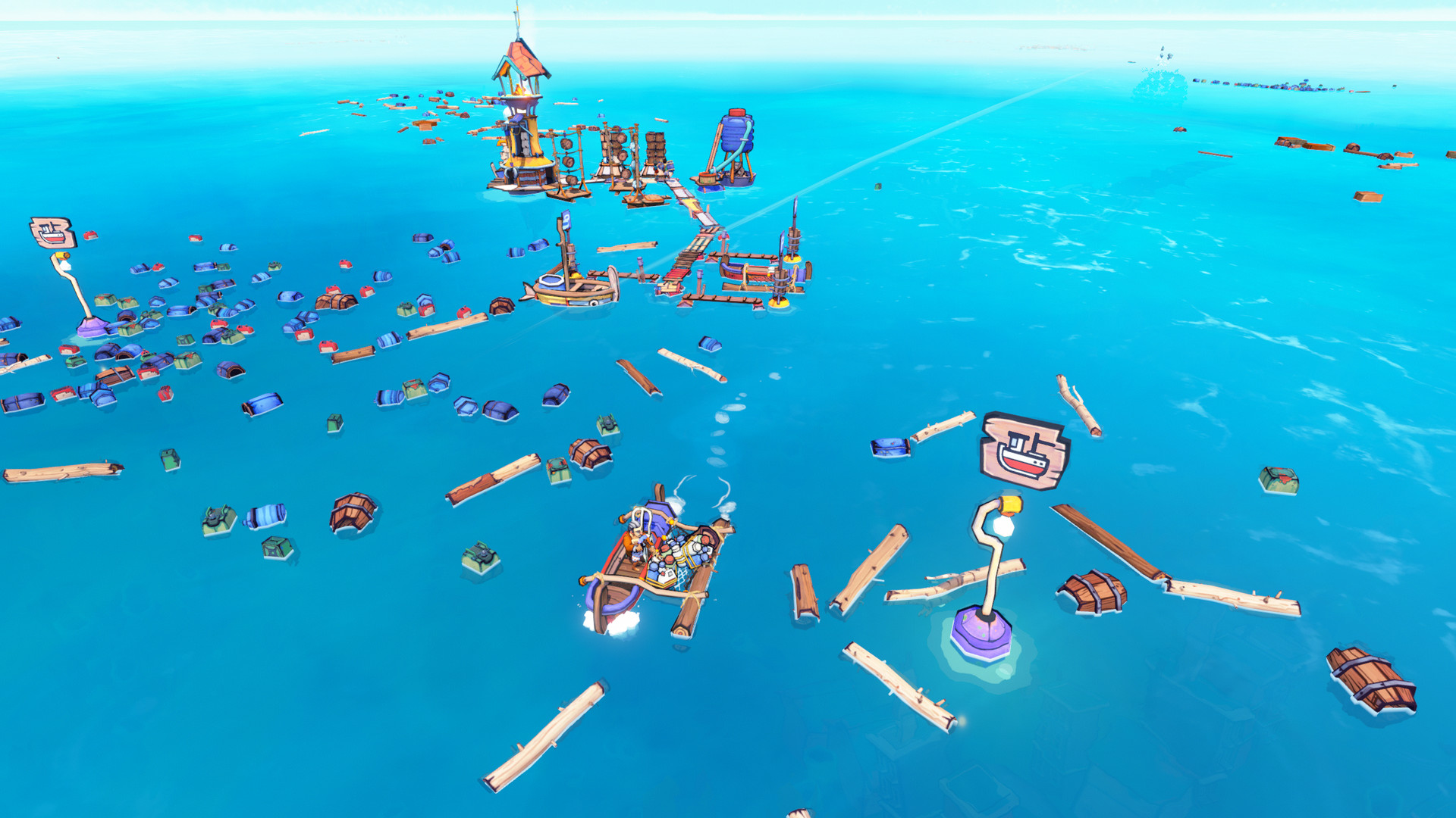 앞서해보기로 출시한 게임으로 이름 그대로 표류하는 쓰레기를 주워 바다 위를 떠다니는 마을을 건설하는 게임입니다.