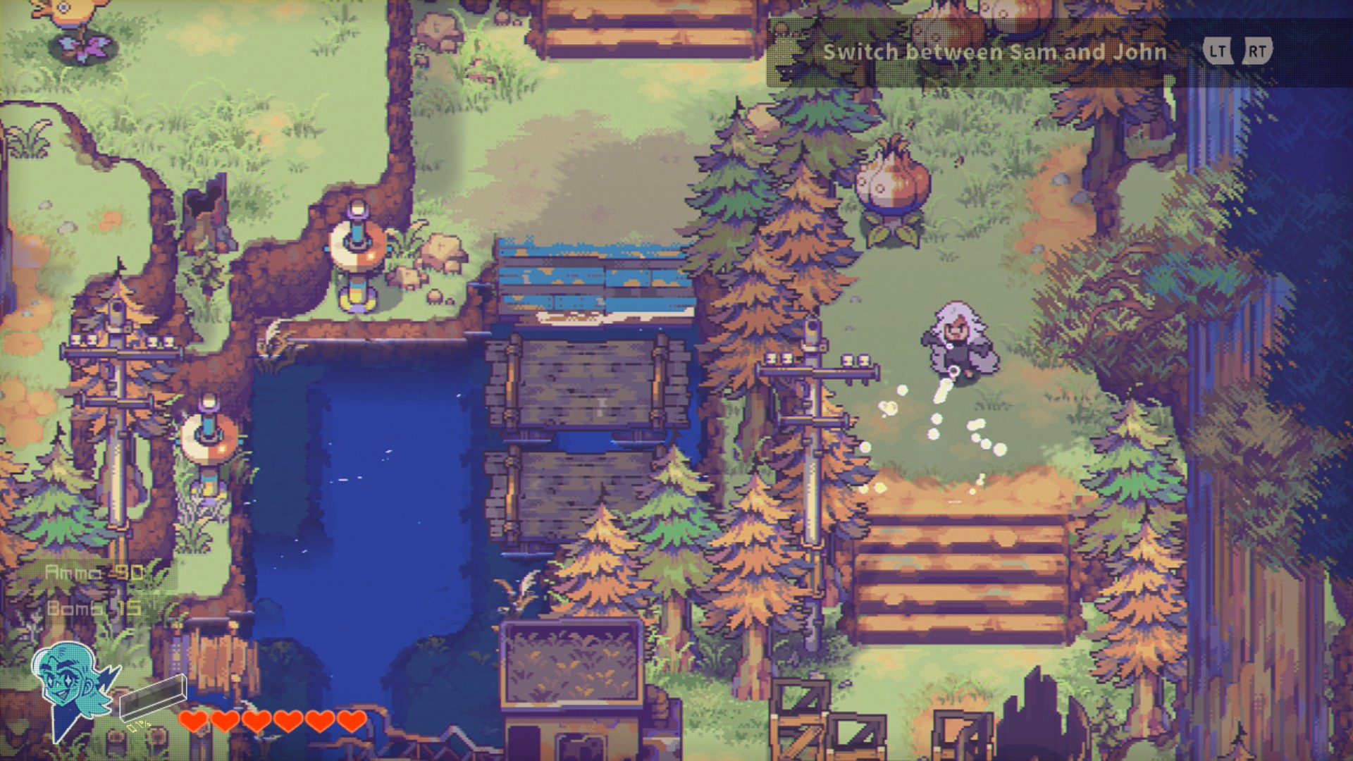 존의 폭탄이 필요한 곳, 샘의 방울이 필요한 곳, 두 캐릭터가 떨어져 있어야하는 곳 등이 있습니다.